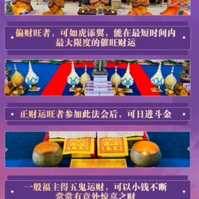 正财运旺者参加此法会后,可日进斗金。