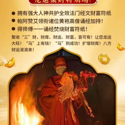 🧧得師傅‮一一‬誦經焚‮財燒‬富符紙!
