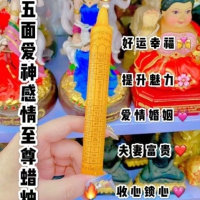 【第二根蜡烛,五面爱神感情至尊】 爱神是最高之身的意思,属于是印度的神祗,愛神起源于印度,是印度教三大主神湿婆 (Shiva) 、毗湿奴 (Vishnu) 和大梵天 (Brahma) (即泰國的四面神)三位一体的化身,在爱情上向爱神诉愿特别灵!很多泰国当地的算命师都会推荐在感情上遇到瓶颈的人去拜,而贵妇名媛们也都会去拜爱神祈求受宠及驭夫成功