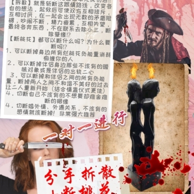 【拆散】就是斩断这跟情路线,改变各自的想法。起效后可使双方互相排斥,互相讨厌,在一起会出现无数的矛盾阻碍,吵闹不断,精力疲累,互相失望,最终各奔东西,不在联系去除小三,断除孽缘⁉️