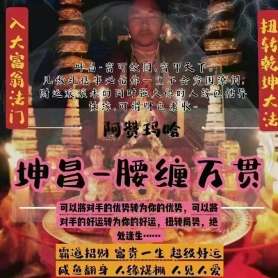 坤昌以往大家都比较熟知的几种泰国招财的佛牌中,其实坤昌也是其中之一,只是制作加持的师傅寥寥无几,所以没有那么耳熟能详,坤昌是泰国很早期的人物(坤平时期),当地人形容为富可敌国十分有钱,因此很多经商的生意人都会佩戴坤昌,希望能为自己带来偏财与横财,民间一直有佩戴坤昌者终生不会穷困潦倒的说法,财运滚滚来的同时强大招人缘异性,可谓财色兼收。