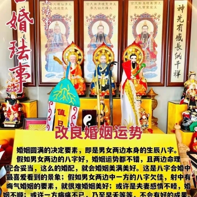 ✨【☯️合婚珐事】为什么婚前婚后要做合婚法事?自古以来,结婚前男女双方要合下八字,也也就是八字合婚,并且结婚时还要选个结婚吉日,为何要合婚?命理学说以为,婚姻圆满的决定要素,即是男女两边本身的生辰八字。假如男女两边的八字好,婚姻运势都不错,且两边命理配合妥当,这么的婚配,就会婚姻美满美好。这是八字合婚中最喜爱看到的景象;假如男女两边中一方的八字欠佳,射中有晦气婚姻的要素,就很难婚姻美好;或许是夫妻感情不睦,婚姻不顺;或许一方病痛不已,乃至早夭等等,不会有好的成果。合婚中假如呈现这种景象,就要留意了。所以合婚是不能马虎的,毕竟结婚就想着白头偕老,而若存在命理缺陷还不知回避,这样的婚姻很难走到头。若婚配中存在不吉利的地方,一个是需要通过选择结婚吉日来缓解矛盾,第二个就需要针对性调理,一命二运三风水,命理推算的意义即在于此。