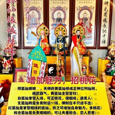 白狐仙掌管人缘,可正桃花,保姻缘,遇贵人;
