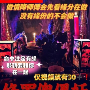 顾名思义来自泰国北部老挝缅甸修行的师傅,[發][發][發]师傅在深山修行一直不愿意出来接商业,最后硬磨嘴皮子才出来。每天只能接6位有缘人,师傅每天修炼毒蠱,虫蠱,蟾蠱,蛇蠱,蜈蠱,家里全部都是各种瓶瓶罐罐的蠱,第一次去师傅家里有种说不出来的恐惧感,师傅对虫子的控术,可以通过5种蠱来通灵,获得血虫的帮助,每个蠱都用血来浸泡,据说每几百只蟾中只有1到2只在血中活下来,其他基本都死掉了。这一点还不够,师傅在对人下蠱以后还会把你的资料放进蠱中浸泡,达到意想不到的效果,做完法事容易有托梦效果[嘿哈]值得体验。对于近日有大投资,大变动一定要提前3天做次法事。效果翻倍!
