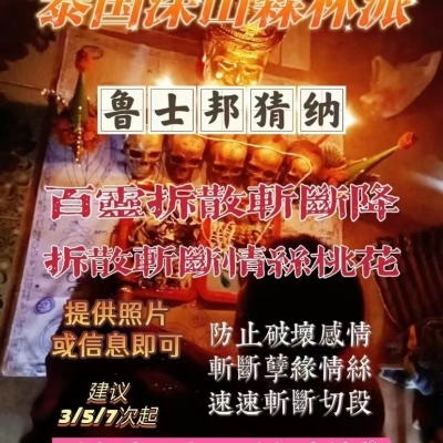 此法事师傅会让他们出现矛盾你的,纠纷爱人看到对方 会心里感到恶感,非常讨厌对方,让他 们两的感情极速破裂出现问题。师傅的 这个砍桃花拆散分离法事,可以把那些 烂桃花全部斩掉,让不适合在一起的人 分开,特别适合,一些情侣分手后,被 对方纠缠不清,威胁恐吓让你甩不掉 的,我们可以解除威胁,并且让情侣之 间很快的分手,好比对方背叛出轨有外 遇等可以让师傅拆散他们,也可以让你 讨厌的夫妻之间感情破裂、离婚等。