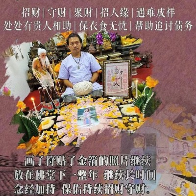 画了符贴了金箔的照片继续放在佛堂下一整年 继续长时 间念经加持 保佑持续招财守财